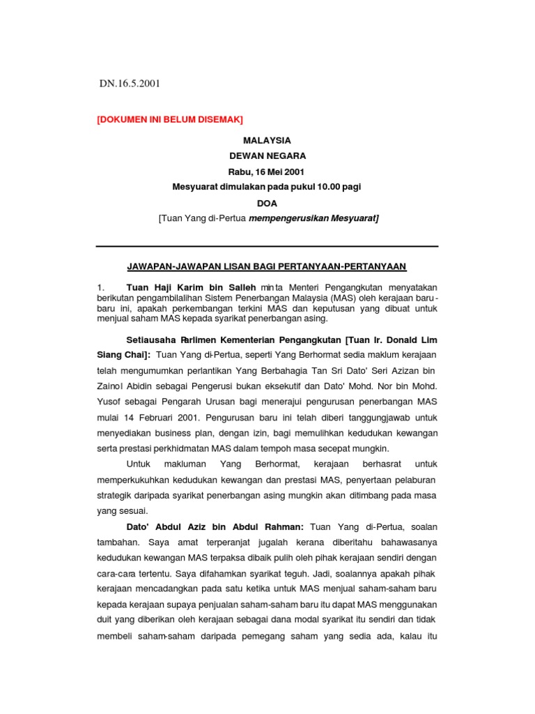 Dokumen Ini Belum Disemak Parlimen Malaysia