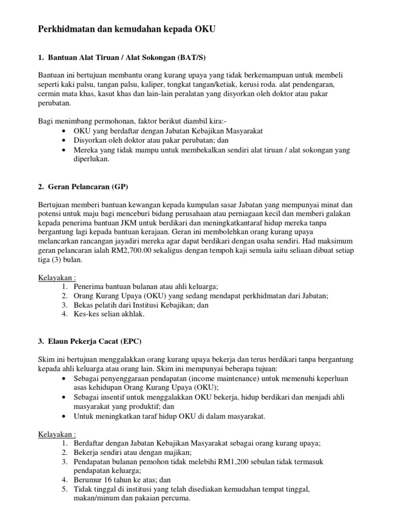 Perkhidmatan Dan Kemudahan Kepada Oku 1 Bantuan Alat Tiruan Alat Sokongan Bat S