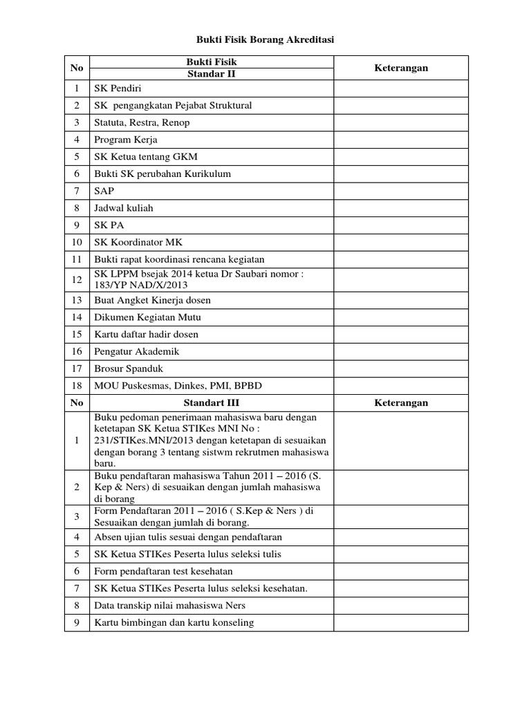 Bukti Fisik Borang Akreditasi