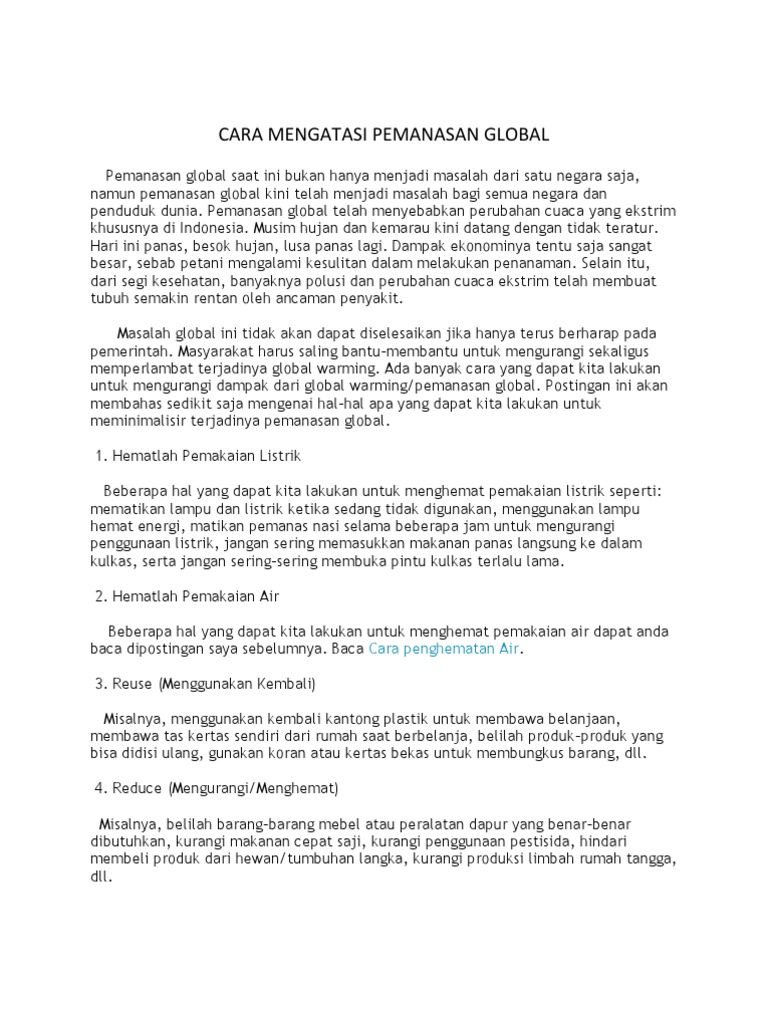 Cara Mengatasi Masalah Pemanasan Global