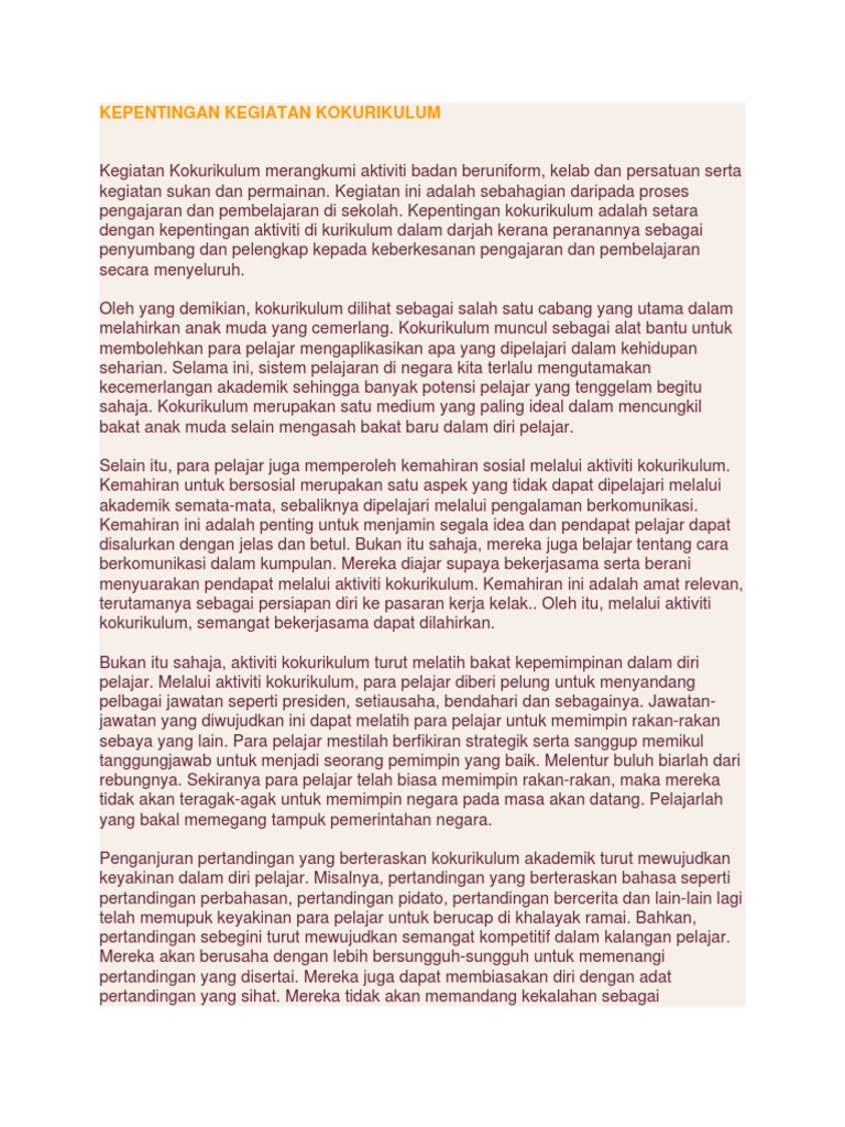 Punca Punca Pelajar Tidak Berminat Untuk Menyertasi Aktiviti Kokurikulum