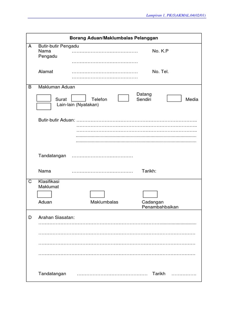 Pdf Borang Aduan Maklum Balas Pelanggan Sarinah Madjit Academia Edu
