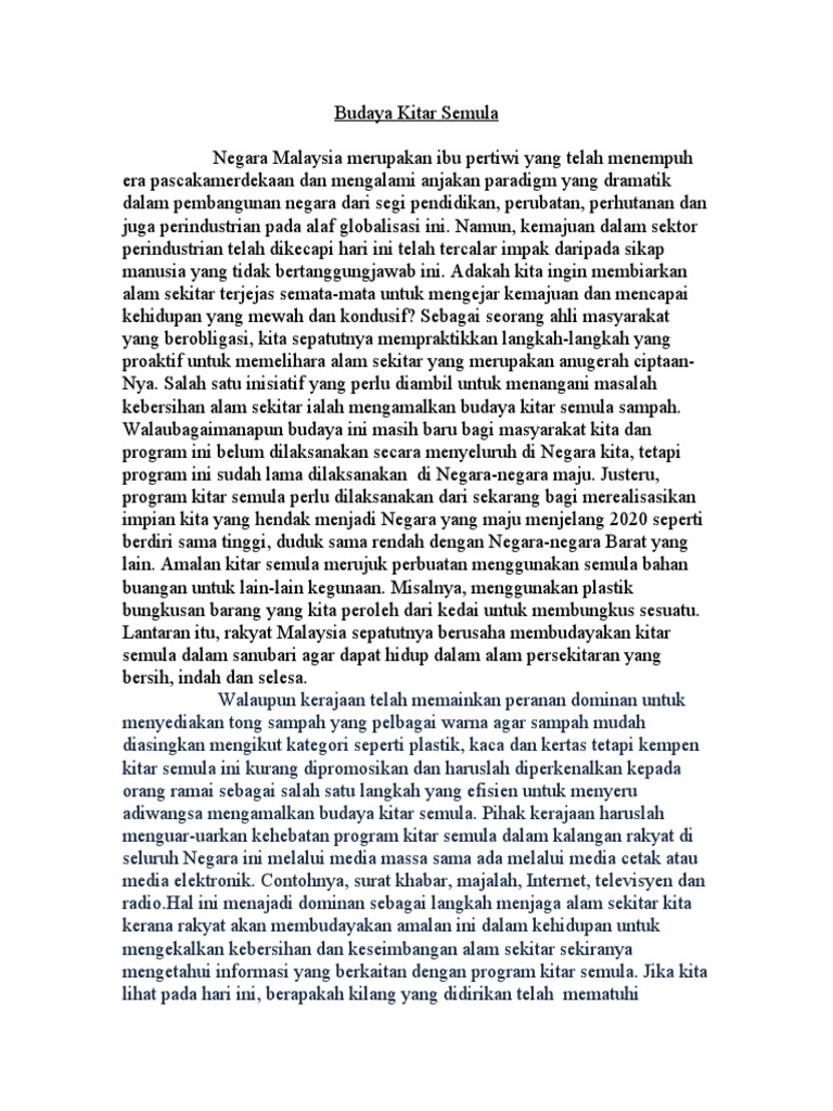 Budaya Kitar Semula 1 Langkah Dan 3kebaikan