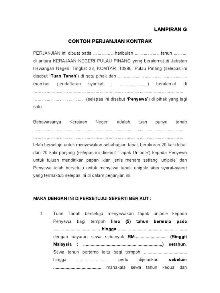 Lainlain 9 Lampiran G Contoh Perjanjian Kontrak