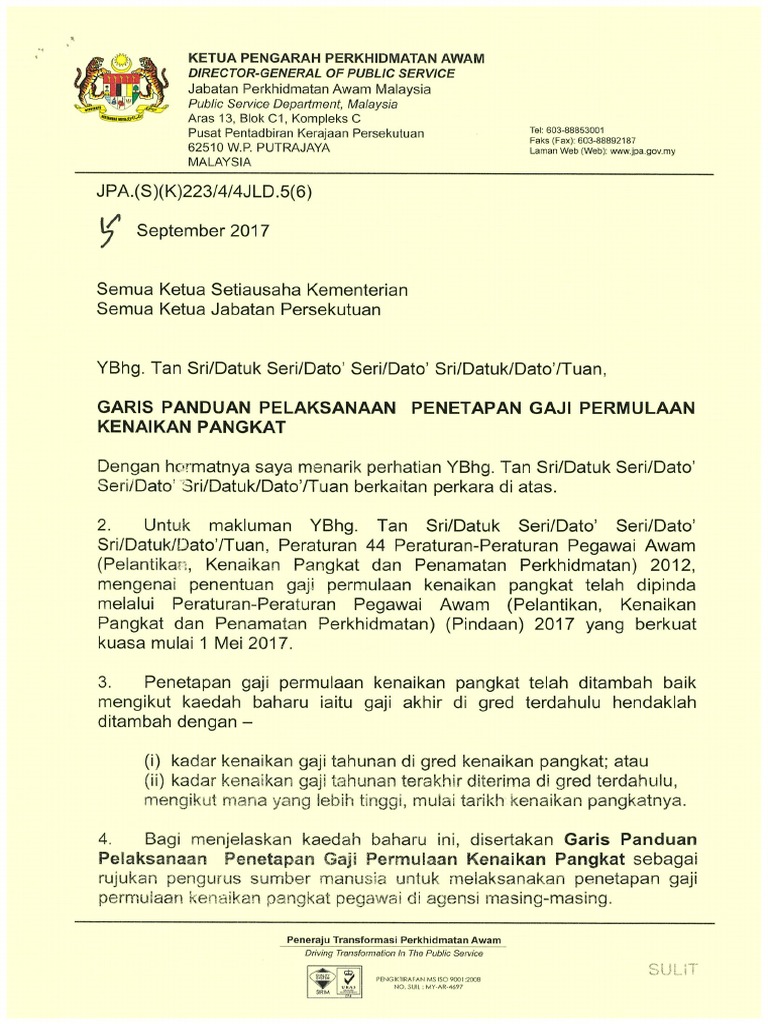 Surat Edaran Jpa S K 223 4 4jld 5 6 Docs Jpa Gov My Docs Se 2017 5 Siri No Garis Panduan Pelaksanaan Penetapan Gaji Permulaan Kenaikan Pangkat Tujuan Garis Panduan Ini