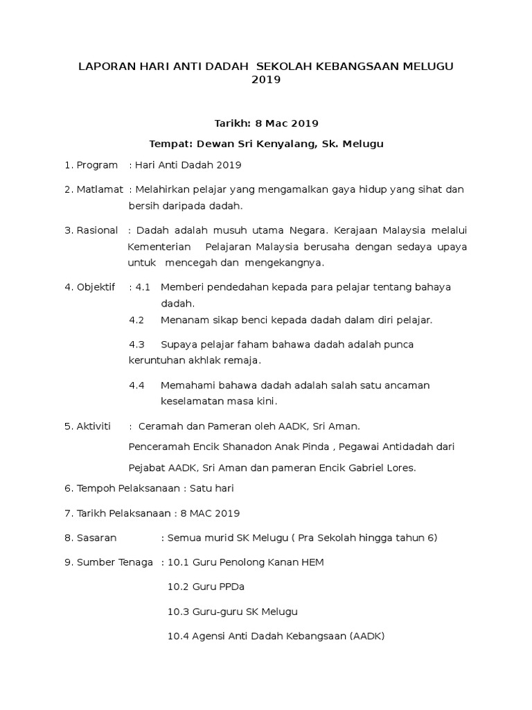 Laporan Hari Anti Dadah Peringkat Sekolah Sk Melugu 2019
