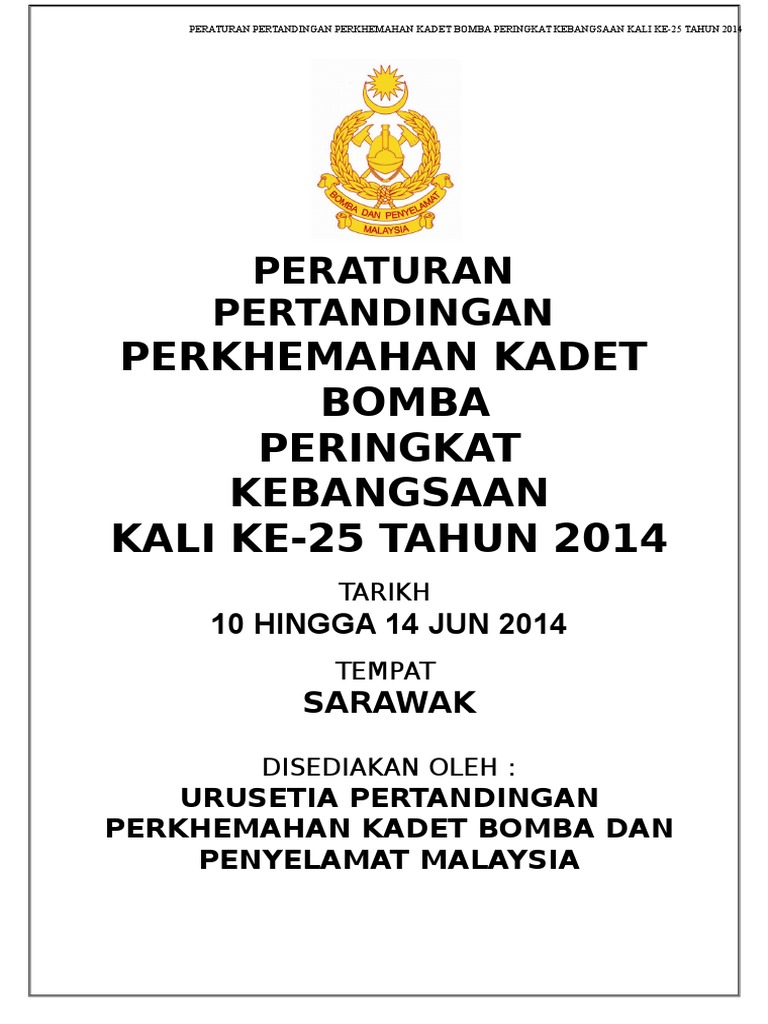 Peraturan Pertandingan Perkhemahan Kadet Bomba Dan Penyelamat 2014