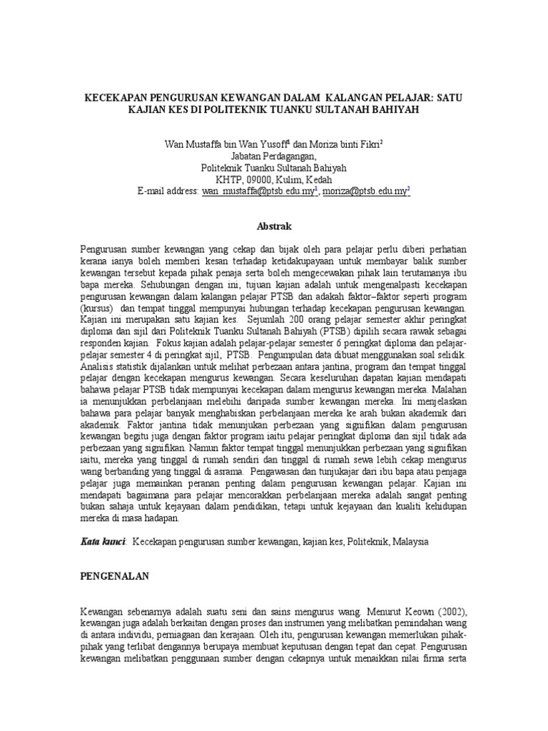 Doc Kajian Kompetensi Pengurusan Kewangan Peribadi Di Kalangan Pelajar Kolej Komuniti Kulim Norfitriah Zainul Abidin Academia Edu