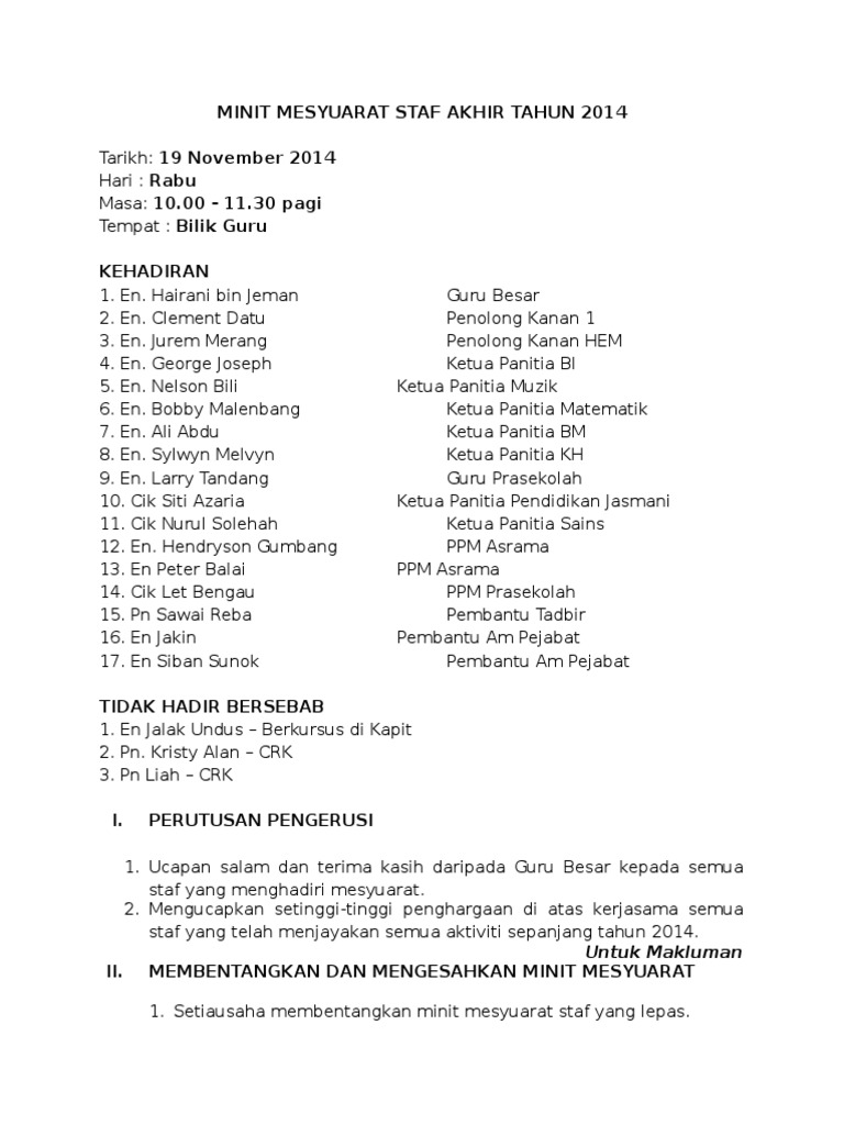 Minit Mesyuarat Staf Akhir Tahun 2014