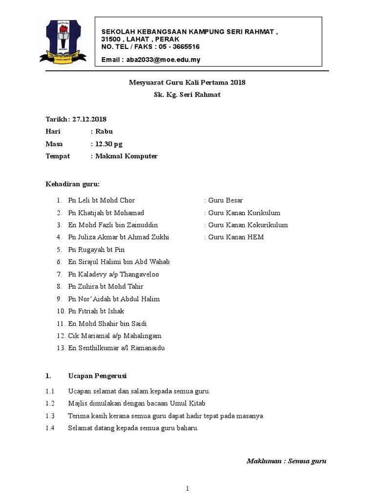 Minit Mesyuarat Guru Kali 1 2018doc