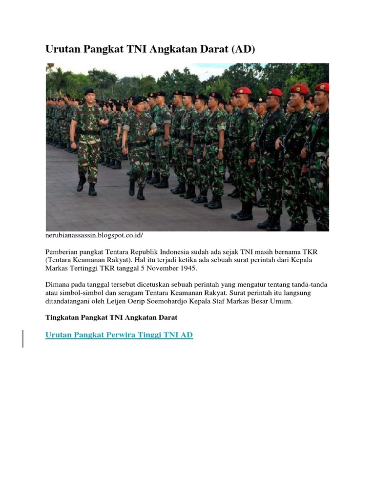 Sejarah Dan Urutan Pangkat Tni Angkatan Darat Ad Yang Harus Kemu Ketahui