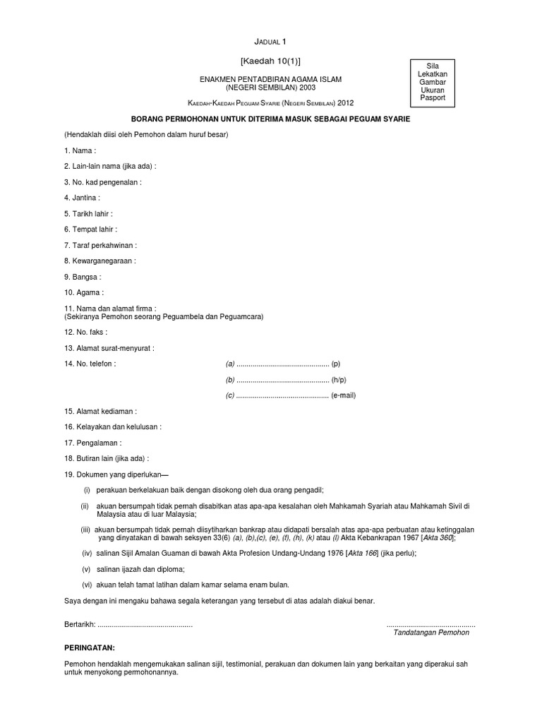 Contoh Borang Permohonan Peguam Syarie