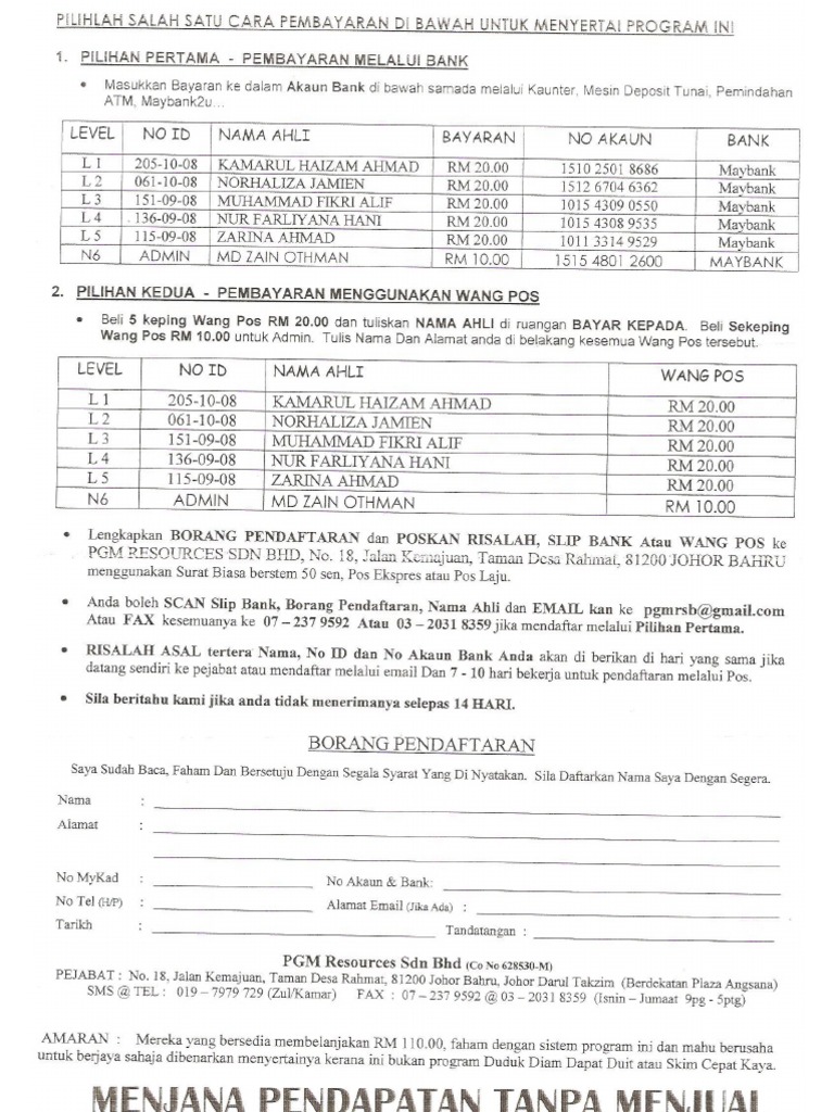 Borang Pendaftaran Mptm