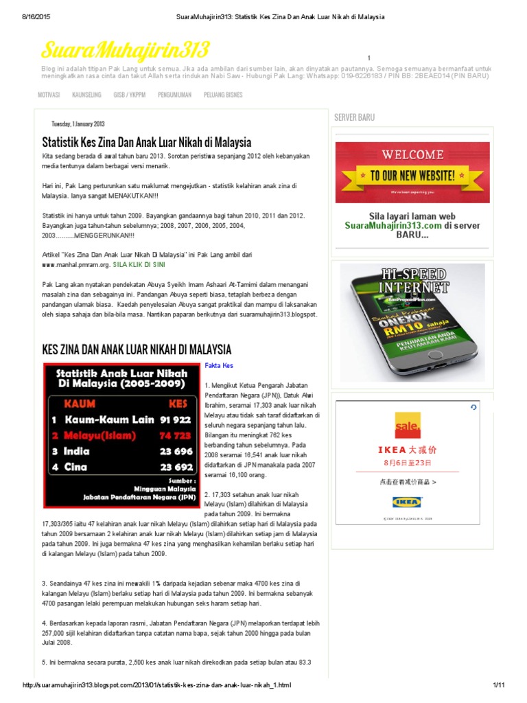 Suaramuhajirin313 Statistik Kes Zina Dan Anak Luar Nikah Di Malaysia Pdf