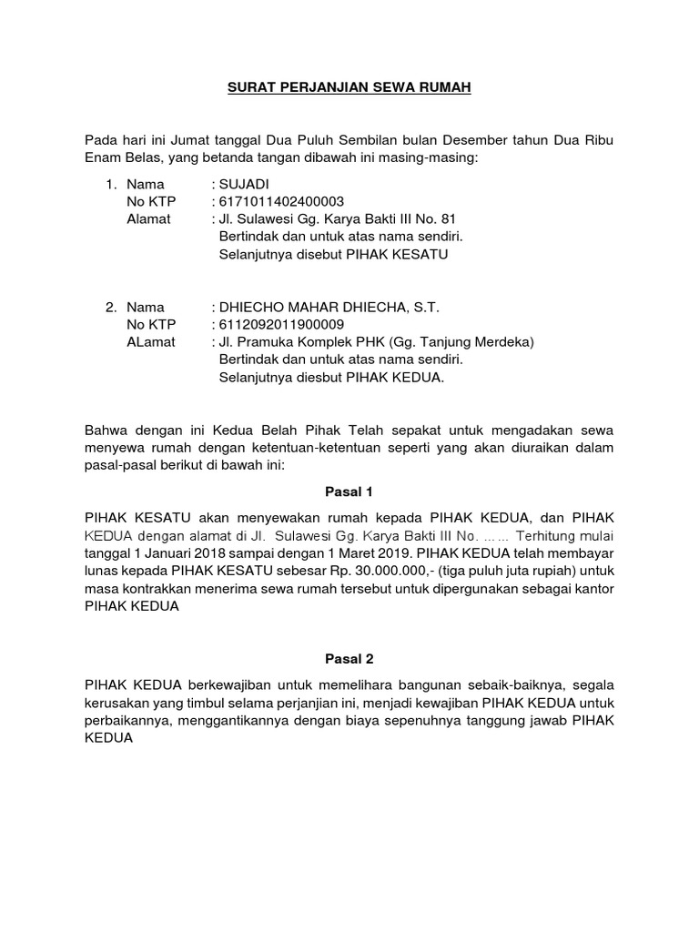 Contoh Surat Perjanjian Sewa Rumah Kontrakan Pdf Doc Lamudi